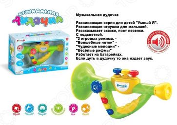 Дудочка музыкальная Zhorya Умный Я - станет замечательным подарком для вашего малыша. Игрушка развивает слух, зрение, мелкую моторику, координацию движения, формирует цветовосприятие и представление о причинно-следственной связи. Дудочка на долго привлечет внимание ребенка и он с увлечением будет открывать для себя новые возможности. Изготовлена из прочного и безопасного пластика. Модель оснащена световыми и звуковыми эффектами. None Возможен самовывоз. Есть доставка.