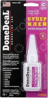 Суперклей Done Deal DD 6636 предназначен для склеивания в любых сочетаниях стали, сплавов алюминия, керамики и фарфора, стекла, дерева, картона, а также большинства пластмасс. После полимеризации безвреден, устойчив к воздействию нефтепродуктов, воды и растворителей. Состав обладает высокой текучестью, потому легко проникает в зазоры и склеивает уже соединенные детали. Время схватывания составляет пол минуты, время полимеризации 2 минуты, время полной полимеризации 24 часа. None Возможен самовывоз. Есть доставка.