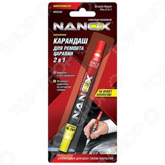Карандаш для закрашивания царапин Nanox NX 8300 предназначен для удобного и быстрого ремонта мелких царапин и сколов на автомобилях, мотоциклах, велосипедах и лодках с любым типом покрытия. Просто держите его в бардачке или велосипедной корзине, чтобы в любой момент, даже находясь на улице, восстановить покрытие за пару минут. Карандаш создан на основе запатентованной технологии NANOX, не имеющей аналогов на рынке, и принадлежит к серии автокосметики premium-класса. Пользоваться очень просто! Карандаш состоит из двух блоков: обезжиривателя и устранителя царапин. Откройте красный колпачок и карандашом-дозатором обработайте царапину, чтобы качественно очистить и обезжирить поверхность, подготовить ее к покраске. Откройте желтый колпачок и завершите ремонт, нанеся на царапину высокотехнологичный ремонтный лак. Готово! Через 1-3 часа лак полностью высохнет, не оставив следа от царапины. Лак надежно защитит обработанную поверхность от коррозии и неблагоприятного воздействия окружающей среды. А сам карандаш с герметичными колпачками прослужит вам долгое время. None Возможен самовывоз. Есть доставка.