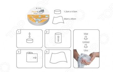 Полотенце дегидрированное AceCamp Magic Towel окажется весьма полезным аксессуаром в путешествии или в походе. Оно занимает очень мало места в чемодане или походном рюкзаке, но при этом это полноценное полотенце. В сложенном виде размер полотенца всего 1,2х4,5 см, но стоит его намочить и вы получите полноценное полотенце размером 30х45 см. None Возможен самовывоз. Есть доставка.
