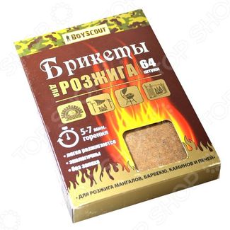 Брикеты для розжига BOYSCOUT 61115 это отличные брикеты для розжига, который сделаны из вторично переработанной древесины. Температура горения: 800 градусов. Если вы любите ходить в походы, то эти брикеты вам точно пригодятся, ведь в экстренной ситуации с ними намного проще разжечь костер, а так же в дальнейшем поддерживать его пламя. None Возможен самовывоз. Есть доставка.