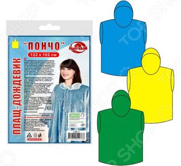 Товар продается в ассортименте. Цвет изделия при комплектации заказа зависит от наличия товарного ассортимента на складе. Плащ-дождевик Мультидом Пончо L24-1 защитит вас во время непогоды. Он свободно надевается поверх основной одежды и совершенно не стесняет движений. Дождевик имеет гораздо больше преимуществ, чем другой защитный аксессуар зонтик. Выполнен из полиэтилена материал не пропускает влагу и отличается высокой прочностью, легко очищается от загрязнений и хорошо держит тепло. Полиэтилен не деформируется при складывании и не образует заломов. Свободный крой плаща не стеснит движений, позволит быстро и легко его надеть снять. Широкий регулируемый капюшон защитит голову и шею от холодных капель. В сложенном виде модель очень компактна, она без труда разместится даже в небольшой сумке или рюкзаке. Оптимальная длина дождевика для комфортного передвижения. С таким плащом можно отправляться даже на отдых за город или в поход. Размер модели: длина 102 см, размах по рукавам 122 см. None Возможен самовывоз. Есть доставка.