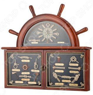Ключница с часами Arti-M 271-061 функциональное и стильное дополнение к вашему домашнему интерьеру. Теперь вам больше не придется каждый раз, уходя на работу, искать оставленные где-то ключи. Забавная ключница позволяет вам хранить ключи на видном месте. Просто расположите ее рядом с входной дверью, и ваши ключи всегда будут лежать на одном и том же месте. Изделие выполнено в виде компактного ящика размером 50х10х50 см с несколькими крючками. Особое преимущество данной ключницы в том, что она может хранить не одну пару ключей, а связки всех членов семьи! Оцените достоинства ключницы Корпус ящика для хранения ключей выполнен из древесины. Этот материал обладает рядом неоспоримых преимуществ: не теряет свои качества даже после многолетнего использования; долговечен; прост в уходе; прекрасно сохраняет первоначальную форму. Благодаря оригинальному дизайну с интересным оформлением в морской тематике, ящик для хранения ключей идеально впишется в любой интерьер. Ключница декорирована большим элементом в виде штурвала с часами, а также несколькими видами морских узлов. Практичная и удобная ключница станет отличным подарком на любой праздник! Изделие предназначено для настенного крепления. None Возможен самовывоз. Есть доставка.