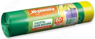 Пакеты для мусора Хозяюшка Мила 07006 незаменимые расходные материалы в любом доме. Выбрасывать бытовые отходы в ведро, в котором нет установленного пакета совсем не удобно, ведь оно будет сильно пачкаться. Используйте их не только дома, но и на даче для сбора мусора в процессе уборки на участке. Пригодятся для поддержания чистоты в вашем доме. В них удобно собирать и выносить бытовые отходы. Рулон содержит 20 пакетов объемом по 60 литров. Для удобства предусмотрены завязки. None Возможен самовывоз. Есть доставка.
