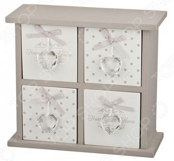 Шкатулка с ящиками Lefard Полоски и горошек 222-223 не только внесет яркий акцент в интерьер дома, но и отлично подойдет в качестве подарка родным и близким. Не секрет, что уют и домашний комфорт, создаются именно из таких, казалось бы привычных и обыденных, на первый взгляд, мелочей. Вазы, шкатулки, рамки с фотографиями все это делает интерьер особенным и вносит в его оформление завершающий штрих. Особенности и преимущества Четыре ящичка. Оригинальный декор. Многофункциональность. Шкатулку можно использовать для хранения украшений, швейной фурнитуры и различных мелких аксессуаров. Изделие выполнено из МДФ-материала и украшено подвесками-сердечками. Подобные элементы декора широко используются в дизайне интерьера и позволяют придать ему еще больше гармоничности, нетривиальности и стилистической завершенности. None Возможен самовывоз. Есть доставка.