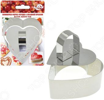 Форма кулинарная с крышкой-прессом Мультидом Сердце AN8-15 станет отличным помощником в организации праздничного стола. С ней вы легко придадите привычным блюдам аккуратную строгую форму. Используется для сервировки слоенных салатов, закусок и десертов, приготовления омлета и глазуньи, порционного тушения, сборки бутербродов и канапе, вырезания заготовок из теста. Укомплектованный пресс с удобной рукояткой применяется для выталкивания сформованного блюда в тарелку. Основной материал высококачественная нержавеющая сталь. Прочная и надежная, она длительное время сохраняет остроту, не подвергается коррозии и не влияет на вкусовые качества пищи. Благодаря особому покрытию форма легко извлекается, не нарушая целостность блюда. После применения комплект рекомендуется промыть губкой с использованием жидких моющих средств. None Возможен самовывоз. Есть доставка.