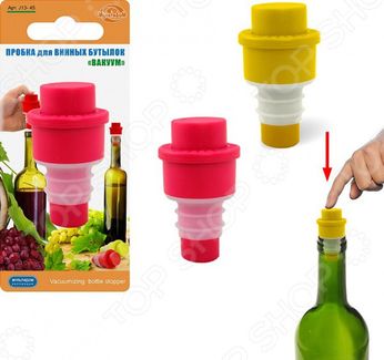 Товар продается в ассортименте. Цвет товара при комплектации заказа зависит от наличия товарного ассортимента на складе. Стильная пробка для винных бутылок Мультидом Вакуум J13-45 станет отличным дополнением кухонного инвентаря. С ее помощью вам удастся сохранить вкус и аромат напитка, даже если бутылку вы открыли много дней назад. Теперь открытая и недопитая бутылка вина или шампанского это не проблема, ведь вы сможете закрыть ее с помощью вакуумной пробки, остановив тем самым процесс окисления вина Пробка надевается быстро и просто. Изделие плотно закрывает горлышко, не позволяя напитку выветриваться. Аксессуар выполнен из пищевого пластика и силикона. Оригинальная форма пробки вызовет улыбку и поднимет настроение в любой компании. Изделие многоразовое и легко моется. Пробка подходит для стандартных винных и пивных бутылок. Стильная, практичная и яркая пробка станет незаменимым аксессуаром бармена. Она прекрасно дополнит арсенал любой кухни и бара. None Возможен самовывоз. Есть доставка.