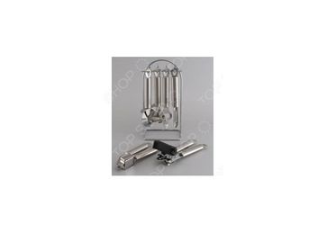 Набор барных инструментов Gipfel AMULET 6082 пригодится для разнообразных задач, в том числе и для помощи в готовке на кухне. Все предметы изготовлены из нержавеющей стали в зеркальной полировке. В наборе: металлическая стойка с 8 крючками, консервный нож, открывалка для бутылок, резак для пиццы, нож для чистки овощей Y-формы, нож для чистки овощей P-формы, пресс для чеснока None Можно купить без предварительного заказа. Возможен самовывоз. Есть доставка.