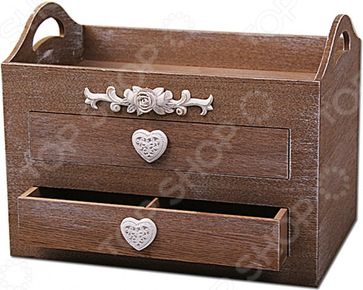 Шкатулка-поднос Patricia IM99-2635 это изящный, модный и очень яркий элемент интерьера. Ее можно использовать для хранения предметов, необходимых для рукоделия, ювелирных украшений или часов все нужное всегда будет под рукой. Представленную модель можно разместить на окне, журнальном столике или прикроватной тумбочке. Классическая форма и универсальная цветовая гамма изделия придадут любому помещению еще большей гармонии, эмоциональной наполненности и добавят нотку романтичности. Более того, дизайн шкатулки позволяет использовать ее как самостоятельный элемент декора. Оцените преимущества шкатулки: Изготовлена из натуральных материалов. Оснащена двумя выдвижными полочками, в каждой из которых по 4 ячейки. Для удобства переноски имеются боковые ручки. Обладает интересным внешним видом. Может стать прекрасным подарком для ваших родных и близких. None Возможен самовывоз. Есть доставка.