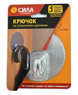 Крючок на силиконовом креплении Сила SSH10-R1S-12 - станет практичным и красивым дополнением любого интерьера. На крючок можно повесить банный халат, полотенце, косметичку, календарь или расписание уроков. Модель представляет собой систему многоразового использования, без гвоздей, для гладких поверхностей, например таких, как кафель, пластик, ламинированные поверхности мебели и т.д. Способен выдержать нагрузку до 2,5 кг. None Возможен самовывоз. Есть доставка.