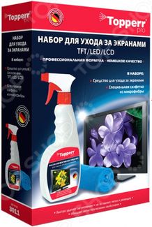 Topperr 3011 это современный и удобный в использовании набор, который подходит для повседневного ухода за экранами плазменных панелей, LCD-мониторов, а также ЭЛТ и ЖК-телевизоров. Спрей и салфетка из микрофибры бережно убирают отпечатки пальцев, брызги, пыль и прочие виды загрязнений. Они не оставляют пятен, разводов и ворсинок и придают поверхности кристальную чистоту. Оцените преимущества: Длительный антистатический эффект. Не повреждается защитное покрытие экрана. Объем средства составляет 500 мл. Распылитель для экономного использования. None Возможен самовывоз. Есть доставка.