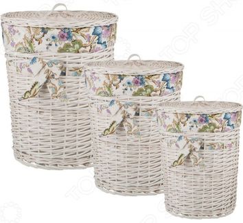 Набор корзин для белья Villa Bianca 190-148 подойдет для хранения косметики и средств гигиены, полотенец и рукодельных принадлежностей, сувениров и журналов, нижнего белья или носочков, детских игрушек. Если раньше мелкие вещи терялись, то теперь они найдут постоянное место. Корзинки можно хранить на виду на любой полке или в серванте. Они будут полезны в гостиной, спальне и даже ванной комнате. Набор прекрасно решит проблему эстетического и удобного хранения самых разных вещей в доме. Лучшее для вашего дома Корзины выполнены из натуральной древесины ивы материал идеально подходит для длительного хранения вещей. Он долговечен, не боится воздействия влаги, не препятствует циркуляции воздуха. Внутри расположена подкладка-чехол с цветочным рисунком. Она не даст вещам из деликатных тканей поцарапаться о стенки корзины. Корзинки можно декорировать лентой или цветами, они будут смотреться нарядно и органично в любом интерьере. Крышки с ручками защитят содержимое от оседания пыли. Благодаря технике плетения формируются небольшие отверстия, через которые циркулирует воздух. Плетеная фактура будет приятно гармонировать с другими элементами интерьера. Корзинки не требуют особого ухода, достаточно периодически удалять с них пыль сухой тканью. Размер изделий 31х36 см, 37х45 см, 45х55 см. None Возможен самовывоз. Есть доставка.