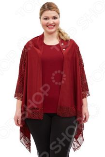 Кардиган Blagof Аланта создан с учетом всех особенностей женской фигуры, чтобы вы могли легко создать неповторимый и элегантный женственный образ. Благодаря продуманному дизайну модель идеально подойдет женщинам с любым типом фигуры и любого возраста. Этот кардиган прекрасен как для повседневного использования, так и для торжественных случаев. Хорошо сочетается с платьем, брюками или юбкой. Кардиган свободного кроя без застежки. Втачные рукава выполнены из ажурной ткани. Стильная булавка выполняет роль декоративного элемента. Длина кардигана до середины бедра. Подол декорирован ажурной тканью в цвет изделия. На фотографии кардиган представлен в сочетании с блузой Милка и брюками Шик . Кардиган сшит из приятной ткани, состоящей на 70 из вискозы, на 20 из полиэстера и на 10 из эластана. Материал не линяет, не скатывается, формы от стирки не теряет. None Возможен самовывоз. Есть доставка.