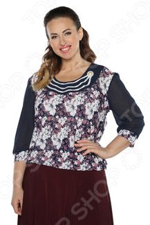 Блуза NOVA STYLE Жемчужный блеск незаменимая вещь в гардеробе модницы. Создана для женщин практически любой комплекции, ведь особенности кроя помогают скрыть недостатки и подчеркнуть достоинства фигуры. Эта блуза отлично подойдет для повседневного использования. Специальный покрой формирует изящный силуэт, делает фигуру визуально стройнее. Элегантная блуза прямого силуэта. Шифоновые рукава на отрезной манжете. Круглый вырез горловины отделан однотонной тканью и декорирован атласными горизонтальными полосками, а также красивой брошью в виде пуговицы. Перед и спинка выполнены из набивной ткани, низ на отрезной планке. Изделие произведено в России. На фотографии модель представлена в сочетании с юбкой Фейерверк . Блуза сшита из тканей-компаньонов: однотонный шифон и набивное вискозное полотно. Материал не линяет, не скатывается, формы от стирки не теряет. None Возможен самовывоз. Есть доставка.