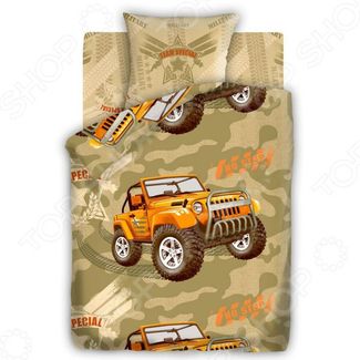 Здоровый и комфортный сон вашего ребенка зависит не только от того насколько мягкие и удобны матрас и подушка, но и от постельного белья. Ведь именно его нежная и чувствительная кожа отличается удивительной восприимчивостью к различным материалам и красителям. Очень важно при выборе постельного белья ориентироваться не только на его цену и яркий дизайн, но и на качество, и тонкость материала. Жесткие и плотные ткани, пусть даже и натуральные, не подходят для ежедневного использования, ведь они могут причинить коже удивительный дискомфорт. Только лучшее и натуральное для вашего ребенка! Детский комплект постельного белья 4You Армейский внедорожник яркий и оригинальный комплект постельного белья, выполненный из бязи. Этот высококачественный материал изготовляется из нитей 100 натурального хлопка и отличается свой прочностью, экологичностью и мягкостью. Он не будет вызывать раздражение или аллергию у нежной детской кожи. Легкая и гигроскопическая ткань практически не мнется, поэтому белье не собирается в грубые складки даже во время сна. Данный комплект отличается удивительной тонкостью и благородным блеском, который придает ему особую изысканность. Другие достоинства постельного белья из бязи Натуральные хлопковые волокна являются неблагоприятной средой для размножения пылевых клещей и грибков. Плотная и приятная на ощупь ткань не мнется и не деформируется, не электризуется. Натуральный материал отлично впитывает влагу и прекрасно пропускает воздух, что обеспечивает оптимальный для вашего тела микроклимат. Прост в уходе, легко отстирывается и без усилий утюжится. Постельное белье не теряет свой цвет и текстуру даже после 70 стирок. На поверхности не образуются катышки. Немного креатива для детской комнаты! Помимо первоклассного качества данный комплект отличается забавным дизайном. Яркий рисунок комплекта станет прекрасным дополнением интерьера любой детской комнаты и обязательно понравится вашему юному автолюбителю и гонщику. Благодаря высокому качеству ткани