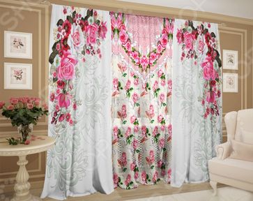 Домашний текстиль, в частности, шторы и гардины важная составляющая любого интерьера, ведь именно они делают помещение более уютным. Но как и любой другой элемент декора, шторы способны как подчеркнуть положительные стороны выбранного стиля интерьера, так и нарушить сложившуюся стилистическую и визуальную гармонию в вашем доме. С умом подобранные шторы способны преобразить вашу комнату, сделать её более светлой или уединенной, яркой или более спокойной, визуально больше или уютней. Для уюта и комфорта в доме Комплект фотоштор с тюлем ТамиТекс Оттепель изящных роз это идеальный вариант для вашей гостиной, спальни, гостевой. Прочные, плотные и качественные шторы не только стильно оформят оконное пространство, но и позволят правильно расставить акценты в интерьере, скрыть небольшие недостатки в отделке. Особенность данной модели заключается в роскошном цветочном рисунке и гармоничной цветовой гамме. Такие шторы понравятся тем, кто следит за модными тенденциям! Качественные, долговечные, практичные Главная особенность и достоинство этой шторы заключается в материале, из которого она выполнена. Габардин это плотная, прочная и удивительно износостойкая ткань, которая обладает рядом достоинств: она частично пропускает солнечный свет; за счет особого плетения синтетических нитей формирует мягкие складки без заломов, легко драпируется и прекрасно держит форму; этот приятный на ощупь материал прост в уходе, устойчив к загрязнениям; сохраняет свой первоначальный внешний вид после многочисленных стирок, не линяя и не теряя насыщенность, яркость цветов; не выцветает на солнце; не накапливает статического электричества, поэтому не притягивает пыль. Комплект штор состоит из двух штор и тюля. Легкий, парящий тюль придаст нежность и воздушность интерьеру, избавит вас от ощущения загруженности интерьера, визуально увеличит помещение и сделает более комфортным для отдыха. Шторы крепятся на карниз при помощи шторной ленты на крючки. При необходимости длину изделий можно регулиро