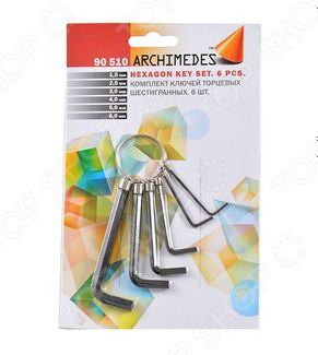 Набор ключей торцевых шестигранных Archimedes 90510 представляет собой сочетание высокого качества рабочей поверхности ключей, легкости и удобства применения. В состав набора входят 6 шестигранных ключей разного размера 1.5 мм, 2,5 мм, 3 мм, 4 мм, 5 мм, 6 мм . Благодаря том, что все они закреплены на металлическом кольце, вы не потеряете ни один из ключей, а так же сможете быстро заменить один размер на другой и продолжить выполнение работ. None Возможен самовывоз. Есть доставка.