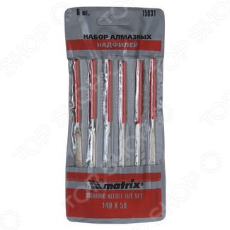 Набор надфилей алмазных MATRIX 15831 инструменты для проведения различных слесарных работ. Предназначены для обработки и доводки изделий из стекла, керамики, а также для снятия фасок на стекле и прочих твердых материалах. Изготовлены из высокоуглеродистой стали. Надфили с напылением из алмазной крошки применяются для мелких слесарных работ с особо твердыми материалами: металлом, керамической плиткой, стеклом и другими. В состав входят плоский, круглый, трехгранный, полукруглый, квадратный и ромбический надфили. None Возможен самовывоз. Есть доставка.