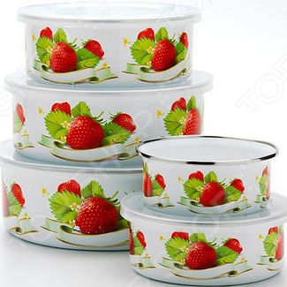 Набор эмалированных контейнеров Земляника отличный комплект для хранения готовых блюд и продуктов. Емкости изготовлены из высококачественной углеродистой стали, внешнее и внутреннее покрытие представлено слоем эмали. Она придает контейнерам приятный блеск и обеспечивает оптимальные условия для хранения пищи. В комплекте представлено мять емкостей с крышками из пластика, надежно защищающими содержимое от посторонних запахов. Контейнеры можно мыть в посудомоечной машине. Диаметр емкостей: 10, 12, 14, 16, 18 см. Объем 180, 330, 510, 740 мл, 1000 мл. None Возможен самовывоз. Есть доставка.