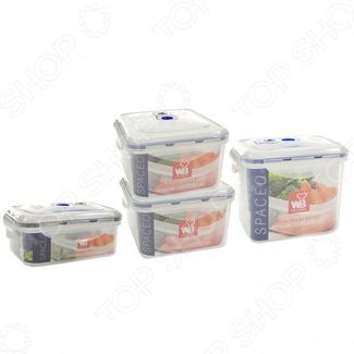 Набор контейнеров для продуктов Wellberg WB-9603 компактный набор из контейнеров для удобной сортировки и хранения пищи. Преимущества: Контейнеры сделаны из прочного пластика, имеют герметичные крышки. Удобные в использовании и хранении, пригодятся в быту для любых случаев. А после использования контейнеры можно очистить в посудомоечной машине. Крышка контейнера легко откидывается, давая доступ к содержимому. Удобную пластиковую емкость можно использовать и как переносной контейнер для продуктов, если вы планируете пикник. Комплект надолго сохранит свежесть, аромат и аппетитный вид продуктов. Объем контейнеров 1250 мл, 1250 мл, 1100 мл, 500 мл. None Возможен самовывоз. Есть доставка.