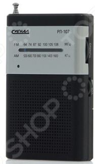 Радиоприемник СИГНАЛ РП-107 карманного типа для прослушивания любых радиостанций в диапазоне FM и AM. Радиоприемник может сопровождать вас в любой поездке. Отправляясь в поход или на дачу, на пикник или рыбалку, не забудьте это компактное устройство, чтобы быть в курсе последних новостей или наслаждаться прослушиванием любимой музыки. Диапазон принимаемых частот: FM расширенный 64-108 МГц; AM 530-1600 КГц. Особенности и преимущества Питание устройства осуществляется от 2 батареек типа AA напряжение 3В . На корпусе имеется клипса для крепления радиоприемника на одежду. Разъем для наушников 3,5 мм . Компактный корпус изготовлен из прочного пластика в серебристо-черной расцветке. Размер 120х98х27 мм. Телескопическая антенна гарантирует хороший прием сигнала УКВ-диапазон . Аналоговая настройка частоты. None Возможен самовывоз. Есть доставка.