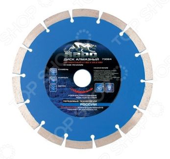 Диск отрезной алмазный Барс сегментный это долговечный отрезной диск для обработки изделий из твердых материалов. Диск делает точный и качественный пропил, он обеспечивает четкие кромки и чистое пиление. Режущий сегмент содержит большое количество синтетических алмазов, которые обеспечивают повышенную эффективность проводимых работ и вы заметите высокую износостойкость диска по сравнению с обычными вариантами. В случае, если вам необходимо провести качественную резку, этот диск именно то, что вам нужно, он предназначен для использования сухим методом резки. None Возможен самовывоз. Есть доставка.