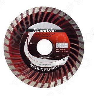Диск отрезной алмазный MATRIX Professional Turbo это долговечный отрезной диск для обработки изделий из твердых материалов. Диск делает точный и качественный пропил, он обеспечивает четкие кромки и чистое пиление. Режущий сегмент содержит большое количество синтетических алмазов, которые обеспечивают повышенную эффективность проводимых работ и вы заметите высокую износостойкость диска по сравнению с обычными вариантами. В случае, если вам необходимо провести качественную резку, этот диск именно то, что вам нужно, он предназначен для использования сухим методом резки. None Возможен самовывоз. Есть доставка.