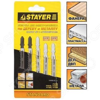 Набор полотен для электролобзика Stayer Standard Хобби 1 159488-H5 z01 сменные элементы для автоматических лобзиков. Лезвия выполнены из высококачественного материала. Применяются для распила дерева, фанеры, пластика, ДСП, ДВП и мягкого металла. Особенности: Новейшая технология производства полотен. Полотна имеют хвостовик EU и совместимы с электролобзиками от ЗУБР, BOSCH, STAYER, BLACK DECKER, SKIL, HITACHI и URAGAN. Изготовлены из высокоуглеродистой и быстрорежущей стали, что гарантирует большой ресурс работы. В наборе 5 штук. None Возможен самовывоз. Есть доставка.