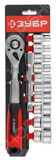 Набор торцевых головок Зубр Мастер 27647-H12 отлично подойдет для самых разнообразных видов монтажно-слесарных работ. Оптимальная комплектация, проверенное временем качество инструмента удовлетворит потребности не только любителя при обслуживании личной техники, но и профессионала на производстве. Торцевые головки обеспечивают максимальный крутящий момент по отношению к резьбе и выдерживают интенсивные нагрузки. Головки изготовлены из хромо-ванадиевой стали. Они покрыты специальным износостойким и антикоррозийным слоем, поэтому прослужат долго. В наборе 10 головок с посадочным размером 1 2 и диаметром от 10 до 24 мм, а также трещотка и удлинитель. Набор поставляется на пластиковом рельсе для удобного хранения или транспортировки. None Возможен самовывоз. Есть доставка.