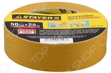 Лента клейкая Stayer Master 1221-50-25 - двусторонняя клейкая лента на полипропиленовой основе которая предназначена для крепления напольных покрытий и фиксации табличек или элементов из бумаги, картона, пластика и других материалов. Позволяет создавать защитное полотно из пленки при проведении малярных работ. Используется лента как в производстве, так и в быту. Клеевой слой представляет собой синтетический каучук нанесенный с 2-х сторон. Используется лента при температурах до 60 С. None Возможен самовывоз. Есть доставка.