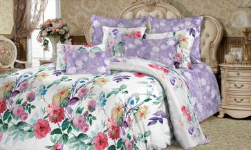 Выбор постельного белья дело ответственное, ведь от его качества зависит то, насколько комфортно вы будете чувствовать себя. Не стоит отвлекаться на яркий и красочный дизайн, главное состав ткани! Постельное белье из синтетических волокон хоть более долговечно и очень красивое, но совсем не пропускает воздух и не отводит влагу. Поэтому, если вы не хотите просыпаться каждый раз в поту такое постельное белье стоит оставить для особых случаев. Однако не стоит увлекаться и изделиями из жестких натуральных тканей. Оно также может доставить вашей чувствительной коже некоторый дискомфорт. Остановите свой выбор на традиционных мягких тканях из натурального хлопка. Подарите себе комфортный, здоровый сон! Комплект постельного белья Романтика Вячеслава Зайцева Весеннее пробуждение . Цвет: сиреневый относится к постельному белью перкалевой группы, которая является идеальным решением для повседневного использования. При производстве этого материала плотного полотняного переплетения, используются некрученые плотные и тонкие нити из длинноволокнистого хлопка. Их сочетание делает перкаль одновременно тонким и прочным. Поэтому в отличии от постельного белья произведенного из бязи, данный комплект будет более гладким, мягким и шелковистым на ощупь. На таком постельном белье не будут возникать катышки, которые делают его не только не привлекательным, но и очень неудобным. Почему стоит выбрать именно этот комплект Экологичен и отличается натуральным происхождением, так как при его производстве не используются токсичные компоненты. Не доставляет дискомфорт даже чувствительной коже. Легкая ткань практически не мнется, поэтому белье не собирается в грубые складки даже во время самого беспокойного сна. Высокий уровень гигроскопичности позволяет белью впитывать излишки влаги, поэтому вы не будете просыпаться в поту каждый раз. Натуральный хлопок является неблагоприятной средой для размножения пылевых клещей и грибков. Прост в уходе, легко отстирывается и без усилий утюжится. Совреме