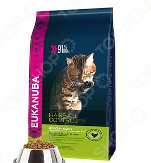 - Eukanuba Hairball Control с домашней птицей по выгодной цене 285 р. руб.;