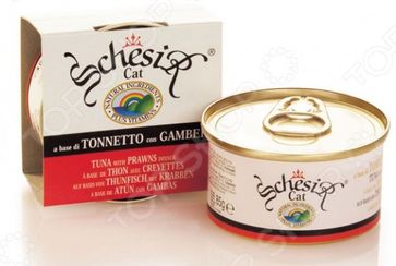Корм консервированный для кошек Schesir с тунцом и креветками сбалансированный рацион для ежедневного питания вашего любимца. Высокая энергетическая ценность удовлетворит потребности животного, при этом у вас не возникнет необходимости скармливать вашему питомцу большие порции. Оцените основные преимущества консервированных кормов Schesir: Изготовлено из натуральных ингредиентов высшего сорта, содержит витамины и питательные вещества, необходимые для здоровья и хорошего самочувствия животного. Использовано мясо отборного тунца. Технология обработки продуктов и их приготовление обеспечивают превосходный вкус и сохранение полезных микроэлементов. Влажный корм натуральный источник воды и питательных веществ. Без вредных добавок. Если вы решили перевести своего питомца на новый рацион, то делайте это постепенно в течение 7 дней. Просто кормите кошку смесью этого корма с предыдущим, со временем уменьшая количество последнего. Ваш верный друг оценит новое лакомство, ведь корм изготовлен из отборных ингредиентов и отличается превосходным вкусом. Внимание! Не забывайте о свежей воде, которая должна быть постоянно в миске вашего питомца. None Возможен самовывоз. Есть доставка.
