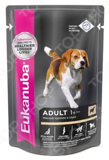 - Eukanuba Adult с ягненком в соусе по выгодной цене 58 р. руб.;