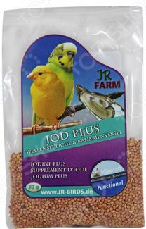 Добавка минеральная для волнистых попугаев и канареек JR Farm Jod Plus смесь с высоким содержанием йода, который поддерживает нормальное функционирование щитовидной железы. Состав смеси был тщательно разработан экспертами с учетом особенностей питания птиц в их естественной среде обитания. Рекомендации по применению: еженедельно добавляйте 1-2 грамма добавки в основной корм. В составе: ла-плата просо, красная свекла. Не содержит искусственных красителей и консервантов. Состав: белок 10,3 , жиры 4,2 , клетчатка 7,9 , зола 2,6 , крахмал 1 , фосфор 0,3 . Содержание минералов кг: йод 200мг. None Возможен самовывоз. Есть доставка.