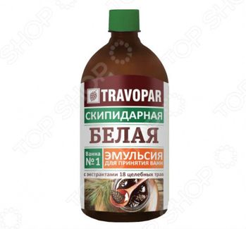Скипидарный раствор для принятия скипидарных ванн Travopar Белая уникальное средство для оздоровления и омоложения организма. Эмульсия предназначена для принятия специальных ванн, оказывающих действие в процессе процедуры на весь организм. Выделите для своего здоровья всего 15 минут времени один раз в два дня, чтобы избавиться от большинства проблем со здоровьем, активировать процесс похудения и омоложения организма. Раствор адаптирован для домашнего применения. Вам не нужно тратить время и деньги на поездку в санаторий, ведь теперь целебные ванны можно принимать и дома. Бутылки хватит на 3-4 месячный курс лечения. Основное действие: Улучшение питания в тканях суставов и позвоночника. Появляется легкость в суставах, увеличивается объем движений, проходит боль через 5-7 применений. Восстановление обмена веществ и нормализация массы тела похудение может достигать 4-5 кг в месяц . Нормализация питания клеток головного мозга, улучшение памяти, нормализация сна, профилактика старческого слабоумия. Улучшение питания в клетках кожи, усиление выработки коллагеновых волокон. Действие скипидара усилено экстрактами 18 целебных трав. Скипидар эфирное масло сосны, получаемое из смолы живицы . Ее собирают особым образом и перерабатывают нагреванием, для выделения эфиров. Такое масло во многом идентично по свойствам эфирным маслам розы, бергамота, сандала. Действие эфиров активизируется в теплой воде 36 C . На 200 литров воды потребуется всего 20 мл масла. Растительные экстракты в составе эмульсии: Алоэ вера, листья березы, кора дуба, душица, зверобой, цветки календулы, листья крапивы, корень лопуха, ромашка, корни солодки, почки сосны, сабельник, полынь, тысячелистник, хвощ, чабрец, череда, шалфей. Приготовлены по специальной технологии. Для усиления эффекта рекомендуется чередовать ванны, используя Белую эмульсию и Желтую приобретается отдельно . None Возможен самовывоз. Есть доставка.