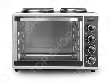 Духовка KITFORT КТ-1703 великолепная альтернатива стандартному духовому шкафу. Такой прибор идеально подойдет для небольших кухонь, в которых нет возможности разместить стандартную духовку. Несмотря на свои довольно скромные размеры, духовка оснащена рядом необходимых функций, которые позволяют приготовить ряд самых разнообразных блюд. Данная модель объединяет в себе сразу и мини-печь, и настольную электрическую плиту. Теперь вы сможете одновременно готовить несколько блюд! 4 режима работы Режим конвекционная духовка используется для повседневного приготовления блюда верхний и нижний элемент и обеспечивает равномерную циркуляцию тепла, благодаря чему блюда запекаются равномерно. Режим гриль позволяет добиться хрустящей и аппетитной корочки верхний нагревательный элемент . Режим выпечка задействует только нижний нагревательный элемент, поэтому идеально подходит для приготовления блюд с хрустящей нижней корочкой. Режим разморозка позволяет уменьшить время для подготовки продуктов для их дальнейшего приготовления. Благодаря тому, что духовка оснащена парными нижними и верхними нагревательными элементами, вы сможете включать их в любой из трех возможных комбинаций: только с нагревом сверху, только с нагревом снизу, одновременно верхний и нижний нагрев. Это дает больше возможностей для кулинарных экспериментов и позволяет самостоятельно контролировать процесс приготовления различных блюд. Вы получаете возможность доводить свои кулинарные идеи до совершенства! Простота и удобство в управлении Данная модель оформлена простой и интуитивно понятной панелью управления, выполненный в виде 4 механических переключателей. Верхний переключатель позволяет регулировать температуру в диапазоне от 0 С до 230 C. Второй переключатель отвечает за выбор подходящего режима приготовления. Третий переключатель позволяет установить таймер. Заданное время может достигать 120 мин. Также предусмотрен звуковой сигнал. Нижний переключатель позволяет настраивать мощность конфорок. Мощнос
