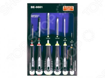 BAHCO BE-9881 - профессиональный набор состоящий из шести отверток с двухкомпонентными рукоятками из полипропилена и термопластичного эластомера, стержни изготовлены из закаленной легированной стали, а также термообработанное жало. Отвертки предназначены для винтов PH и винтов со шлицем стандарт. None Возможен самовывоз. Есть доставка.