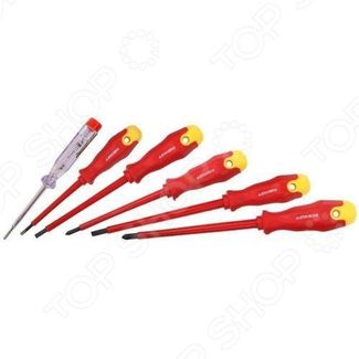 Набор отверток диэлектрических Stayer Profi-Electro 25145-H6 z01 - набор из 5-ти диэлеткрических отверток и тестера, который предназначенных для монтажа и демонтажа крепежных соединений. Стержень отверток выполнен из высококачественной стали, со специальным покрытием, которое предотвращает воздействие коррозии. Эргономичная 2-компонентная рукоятка отверток имеет прорезиненные вставки, благодаря чему инструмент не соскальзывает в руке при использовании. None Возможен самовывоз. Есть доставка.
