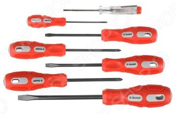 Набор отверток Зубр Мастер 25235-H7 предназначен для монтажных, крепежных или ремонтных работ с резьбовыми соединениями, имеющими рабочие профили SL и PH. Оптимальная комплектация, проверенное временем качество инструмента удовлетворит потребности не только любителя, но и профессионала. Стрежни отверток изготовлены из хромо-ванадиевой стали. Наконечники покрыты специальным износостойким и антикоррозийным слоем, поэтому отвертки прослужат долго. Эргономичные трехкомпонентные ручки обеспечат надежный и удобный захват в процессе работы. Кроме того, покрытие ручек устойчиво к химическим веществам. Каждая отвертка снабжена отверстием для подвеса на крючок. В комплект входят отвертки: SL 3,5 x 75 мм, SL 5,0 x 100 мм, SL 6,0 x 125 мм, SL 8,0 х 150 мм; PH 1 x 100 мм, PH 2 x 100 мм; тестер 100-250 В. None Возможен самовывоз. Есть доставка.