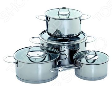 С набором посуды Augustin Welz AW-2200 приготовление ваших любимых блюд перейдет на качественно новый уровень. В комплект входят восемь предметов: три кастрюли, ковш и четыре крышки. Набор многофункционален и удобен в использовании, подойдет для варки супов, приготовления блюд из мяса и рыбы, гарниров т.д. Посуда выполнена из высококачественной нержавеющей стали и снабжена 3-слойным штампованным дном состоящим на 7 мм из алюминия и на 0,5 мм из стали . Внутри кастрюль имеется мерная шкала, что создает дополнительное удобство при готовке. Крышки выполнены из жаропрочного стекла и снабжены паровыпуском и металлическим ободком для защиты от сколов и трещин. Набор подходит для всех типов плит, включая индукционные. Посуда пригодна для мытья в посудомоечной машине. None Возможен самовывоз. Есть доставка.