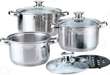 Ничего лишнего Любая захламленная кухня теряет свой уют и привлекательность. Но, в чем же тогда готовить еду без кастрюль, сковородок и прочего Существует определенный минимум посуды, без которой вам не обойтись. Например, великолепный набор посуды для готовки марки Bekker является первостепенно важным приобретением, который облегчит ваш труд на кухне. В комплект входят несколько кастрюль разного объема: большая кастрюля на 6,5 литров для готовки первых блюд; кастрюля на 3,9 литра подойдет для варки макаронных изделий; маленькая кастрюля на 2,9 литра подойдет для варки яиц, приготовления каш и еды для детей; специальная бакелитовая подставка под горячие кастрюли чтобы защитить стол от повреждений. Три кастрюли на вашей кухне идеальное соотношение удобства и экономии места. Профессиональные повара рекомендуют иметь минимум две кастрюли, а с тремя перед вами исчезнут все преграды и трудности кулинарии! Кухонный арсенал Набор посуды Bekker BK-1250 выполнен с применением передовых технологий производства из высококлассных материалов. Кастрюли полностью соответствуют самым строгим мировым стандартам в области безопасности и экологии. Как и вся продукция этого бренда, кастрюли из нержавеющей стали обладает рядом существенных достоинств и преимуществ в сравнении с аналогами: корпус изготовлен из высококачественной нержавеющей стали 18 10; на материале не остается царапин даже при использовании металлической лопатки; на нержавеющей стали не могут развиваться бактерии, а значит этот материал безопасен для здоровья; внутренняя мерная шкала позволяет точно налить необходимое количество жидкости; крышка из жаропрочного стекла с пароотводом плотно прилегает к кастрюле; кастрюли можно мыть в посудомоечной машине, что сэкономит вам время. Это полноценный набор кастрюль: три емкости и к каждой прилагается своя крышка. Удобство использования обеспечивают плотно прилегающая стеклянная крышка и капсулированное многослойное дно, которое предотвращает пригорание пищи. Такж