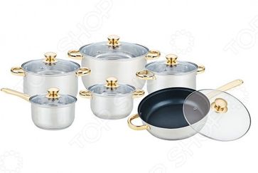 Набор посуды Bekker BK-2717 Империал комплект из предметов для готовки, изготовленный из высококачественной нержавеющей стали. Оригинальный дизайн сделает их отличным украшением любой кухни и непременно порадует качеством. Особенности: Высококачественная нержавеющая сталь придает привлекательный внешний вид, обеспечивает легкую очистку и долговечность! Приобретая данный набор вы делаете выгодную инвестицию! Крышка, выполненная из термостойкого стекла, позволяет следить за процессом приготовления пищи. Крышка имеет отверстие для выхода пара и металлический обод, что сделает процесс приготовления блюд легким, приятным и необременительным мероприятием! Форма кромки кастрюли предотвращает разливание жидкости, а благодаря правильности линий кромки в комбинации с крышкой обеспечивается максимальная герметизация между ними! Ручки из нержавеющей стали под золото, являются прекрасным акцентом и делают кастрюли нарядными и при этом не вычурными! Станет прекрасным подарком дорогому человеку, родным и близким! None Возможен самовывоз. Есть доставка.