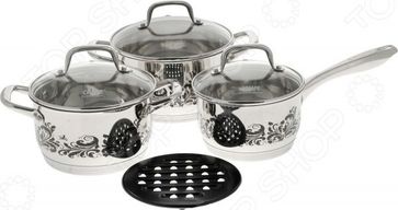 Умение хорошо и вкусно готовить причина гордости любой хозяйки. И несмотря на то, что львиная доля этого умения зависит от таланта, внимательности и скрупулезности, ни для кого не секрет, что вкус и аромат любого блюда зависит от того, в какой посуде оно было приготовлено. Дешевые кастрюли или сковородки сомнительного качества способны испортить не только вкус продуктов металлическим послевкусием, но и варочную поверхность, если вдруг лопнут или протекут. Качественная посуда для вашей кухни! Набор посуды Calve CL-1879 это идеальный выбор для умелых хозяек, которые ценят качество, практичность и простоту. Он предназначен для экологичного и здорового приготовления пищи. Благодаря тому, что при производстве используется нержавеющая сталь марки 18 10, прошедшая все необходимые проверки качества, вкус и качество продуктов не меняется даже после длительного процесса приготовления. Термоаккумулируюшее индукционное дно обеспечивает равномерное распределение тепла и быстрый нагрев, поэтому готовить можно начинать через несколько минут после того, как кастрюля была поставлена на огонь . Комплект состоит из 7 предметов: 2 кастрюль разного объема с крышками, сотейника на 1,7 л с крышкой и черной бакелитовой подставки. Это означает, что вы сможете выбрать кастрюлю нужного вам объема и не оставлять её полупустую в холодильнике. Объем самой большой кастрюли составляет 3,3 л, а самой маленькой 2,4 л. Оцените главные преимущества этого набора Разный объем кастрюль для комфортного приготовления самых разнообразных блюд. Прочные и удобные стальные ручки. Ручки закреплены стальными заклепками, поэтому со временем они не будут отламываться или трескаться. Крышки из закаленного стекла имеют металлический обод, который надежно защищает от возникновения сколов и трещин по краям. Термоаккулмулирующее дно надолго сохраняет тепло и позволяет готовить на индукционных плитах. Внутри имеется шкала. Продуманная конструкция, стильное исполнение! Главная особенность данного набора посуды з
