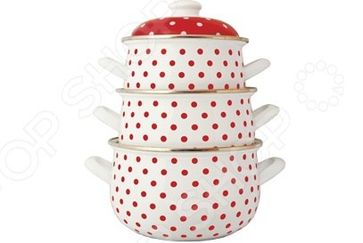 Набор кастрюль Interos Горошек это объемные кастрюли, которые прекрасно подходят для жарки, пассировки и тушения. Благодаря эмалированному покрытию, в кастрюле можно приготовить разнообразные блюда из мяса, рыбы, птицы и овощей практически не используя масло. Готовое блюдо получится не только вкусным, но и полезным. Посуду можно мыть в посудомоечной машине, кроме того, она изготовлена по всем стандартами безопасности и экологии. None Возможен самовывоз. Есть доставка.