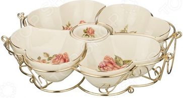 Менажница Lefard Корейская роза 126-682 понадобится для хранения сразу нескольких блюд и для подачи на стол. Выполнена в виде декоративной емкости с 5 секциями. В этой менажнице можно подать на стол сразу несколько блюд в разных тарелках, но в пределах одной посуды, при этом не смешивая их между собой. Такая замысловатая вещь идеально подходит для сервировки определенных блюд, например: варенья, снеков или соусов, салатов, заправок и вторых блюд, рыбу со всякими соусами и прочие закуски. Менажница имеет несколько преимуществ: Проста в уходе и использовании. Не влияет на вкус сервируемых блюд. Украшена декоративными элементами. Легко выдерживает высокие температуры. Экологически чистый материал без вредных примесей. Такая посуда непременно понравится любой хозяйке, потому как позволяет эффективно экономить место на праздничном столе, а также красиво расположить различные блюда и закуски. None Возможен самовывоз. Есть доставка.
