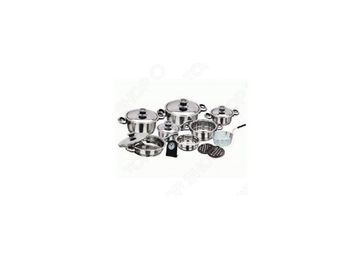 Набор посуды из 16-ти предметов все что нужно настоящей хозяйке! Набор состоит из 3-х кастрюль 2,1 л, 3,7 л, 6,3 л , ковша 1,6 л , сковороды 20 см , пароварки 20 см , миски, фритюрницы, двух подставок под горячее, металлических крышек с термодатичком. Металлические ручки с пластиковыми вставками. При покупке этого набора посуды в подарок вы получите часы! None Можно купить без предварительного заказа. Возможен самовывоз. Есть доставка.