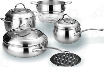 С помощью набора кухонной посуды Vitesse Betty можно приготовить множество вкусных и изысканных блюд. В наборе: кастрюля, сотейник, сковорода, 3 крышки, корзина для приготовления на пару и бакелитовая подставка. Нагрев на конфорках: газовых, стеклокерамических, чугунных, галогенных. Все предметы набора Vitesse Betty имеют корпус из нержавеющей стали, многослойное термоаккумулирующее дно, ручки на клепках, матовую полировку, крышки из нержавеющей стали и термостойкого стекла. Можно мыть в посудомоечной машине. None Возможен самовывоз. Есть доставка.