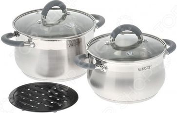 Набор посуды Vitesse VS-2038 состоит из 2-х кастрюль с крышками и бакелитовой подставки под горячее. Кастрюли изготовлены из высококачественной нержавеющей стали. Сочетание матовой полировки и зеркальной поверхности придает изделиям изящество и безупречный внешний вид, поэтому они прекрасно впишутся в интерьер любой кухни. Многослойное дно способствует равномерному распределению тепла и предотвращает пригорание продуктов. На внутренней стороне кастрюли имеется шкала литража, обеспечивающая еще более комфортную готовку и возможность точного отмеривания жидкости. Рукоятки с силиконовым покрытием, предотвращающим нагревание. Благодаря эргономичной форме, они очень удобны в использовании. Материал крышки жаропрочное стекло с отверстием для выхода пара, удобной ручкой и прочным металлическим ободом. Кастрюли подойдут для любых видов плит, в том числе и индукционных. Можно мыть в посудомоечной машине. Кастрюля малая: диаметр 18 см, объем 2,7л, высота стенок 12 см, диаметр дна 15,5 см. Кастрюля большая: диаметр 20 см, объем 3,7л, высота стенок 13 см, диаметр дна 17,5 см. Толщина стенок: 0,5-0,6 мм, толщина дна 3 мм. Диаметр бакелитовой подставки 16,5 см. None Возможен самовывоз. Есть доставка.