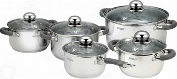 Набор посуды Vitesse VS-9018 будет отличным дополнением к комплекту вашей кухонной утвари. Приготовление любимых блюд с его приобретением перейдет на качественно новый уровень и вы сможете воплотить в жизнь любые кулинарные идеи. В комплект входит ковш и четыре кастрюли с крышками. Набор многофункционален и удобен в использовании, подойдет для варки супов, приготовления блюд из мяса и рыбы, гарниров, соусов т.д. Особенности и преимущества Силиконовые накладки на ручках препятствуют выскальзыванию посуды из рук. Многослойное термоаккумулирующее дно обеспечивает быстрое и равномерное распределение тепла. Крышки из термостойкого стекла оснащены паровыпуском и металлическими ободками для защиты от сколов и трещин. Шкала литража нанесена на внутреннюю стенку кастрюль, позволяет точно отмерить объем набранной жидкости. Многофункциональность посуда совместима с газовыми, стеклокерамическими, чугунными и галогеновыми конфорками. В качестве материала изготовления используется высококачественная нержавеющая сталь. Этот металл повсеместно применяется в производстве кухонной посуды, благодаря долговечности и устойчивости к образованию царапин и трещин. Сталь, даже под воздействием высоких температур, не вступает в реакции с, содержащимися в продуктах, кислотами и щелочами, что способствует максимальному сохранению полезных веществ и микроэлементов. None Возможен самовывоз. Есть доставка.